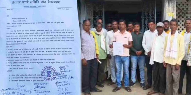 धमतरी 25 नवंबर 2025। धमतरी जिले के वनांचल क्षेत्र में किसानों ने अपनी पांच सूत्रीय मांगो को लेकर चक्काजाम करने का ऐलान कर दिया है,ये प्रर्दशन कल यानी 26 नवंबर दिन बुधवार को धमतरी, नगरी मुख्यमार्ग स्टेट हाइवे में कर्राघाटी मोड़ के पास किया जाएगा,इस संदर्भ में किसान संघर्ष समिती बेलरबाहरा जोन के किसानों ने कलेक्टर के नाम तहसीलदार को ज्ञापन सौंपा है।