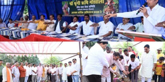 धमतरी 6 अक्टूबर 2025।श्री श्रृंगी ऋषि गौशाला जीव रक्षा सेवा समिति, पंडरीपानी (भीतररास) में बुधवार को गौशाला शेड निर्माण कार्य के लिए भूमि पूजन कार्यक्रम का आयोजन किया गया। लगभग ₹15 लाख की लागत से बनने वाले इस गौशाला शेड के निर्माण कार्य का शुभारंभ किया गया।