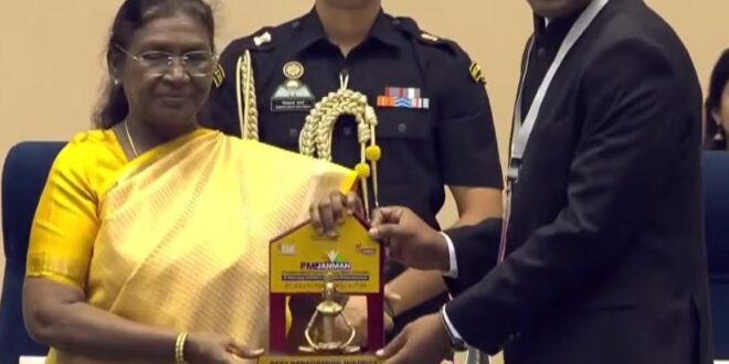 CG – प्रधानमंत्री जनमन योजना के उत्कृष्ट क्रियान्वयन हेतु धमतरी जिले को राष्ट्रीय पुरस्कार,राष्ट्रपति द्रौपदी मुर्मू द्वारा कलेक्टर अबिनाश मिश्रा को प्रदान किया गया सम्मान