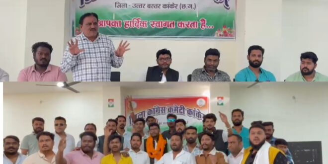 कांकेर :- जिले में युवा कांग्रेस की गतिविधियों में फिर से तेजी आ गई है। करीब तीन साल बाद नई कार्यकारिणी के गठन के बाद आज राजीव भवन कांकेर में पहली महत्वपूर्ण बैठक आयोजित की गई। बैठक में जिले भर से आए पदाधिकारी और कार्यकर्ता बड़ी संख्या में मौजूद रहे।