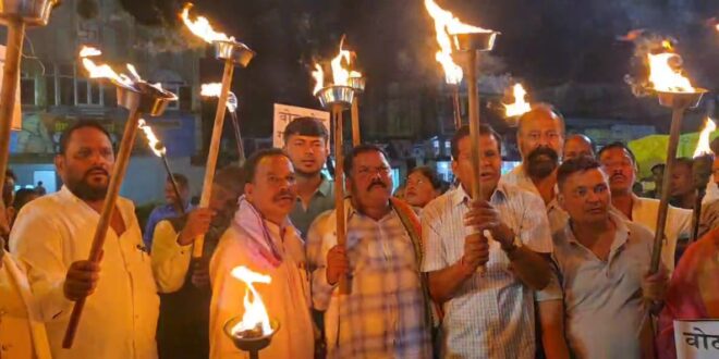 कांग्रेस भवन से रविवार शाम कांग्रेस पार्टी ने मशाल रैली निकाली, जो जिला मुख्यालय के प्रमुख मार्गों से होकर गुजरी और गांधी चौक में आकर समाप्त हुई। रैली के दौरान कार्यकर्ताओं ने “लोकतंत्र की हत्या करना बंद करो” जैसे नारे लगाए और केंद्र सरकार की नीतियों पर विरोध जताया।